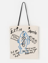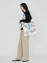 シルクスカーフの柄をそのままのプリント技法で帆布の生地にプリントしたmanipuriのトートバッグ。ハンドルは高級感のある牛革でカジュアルすぎず上品さを演出できます。普段使いや通勤用、お稽古やお出かけなど幅広いシーンで活躍してくれるA4サイズの書類が縦に横にも入りとても使いやすいサイズ感です。内ポケット付きなのでスマホや鍵など見失いたくないアイテムも分けて収納可能です。長めのハンドルは肩掛けもOK。