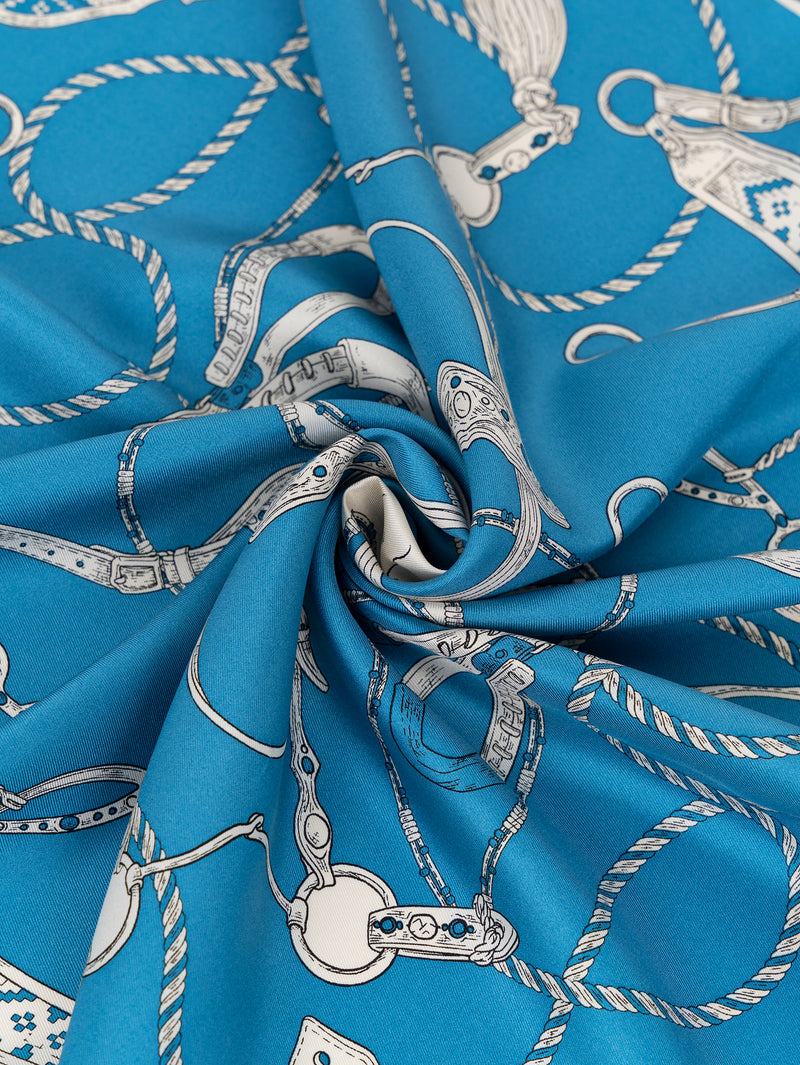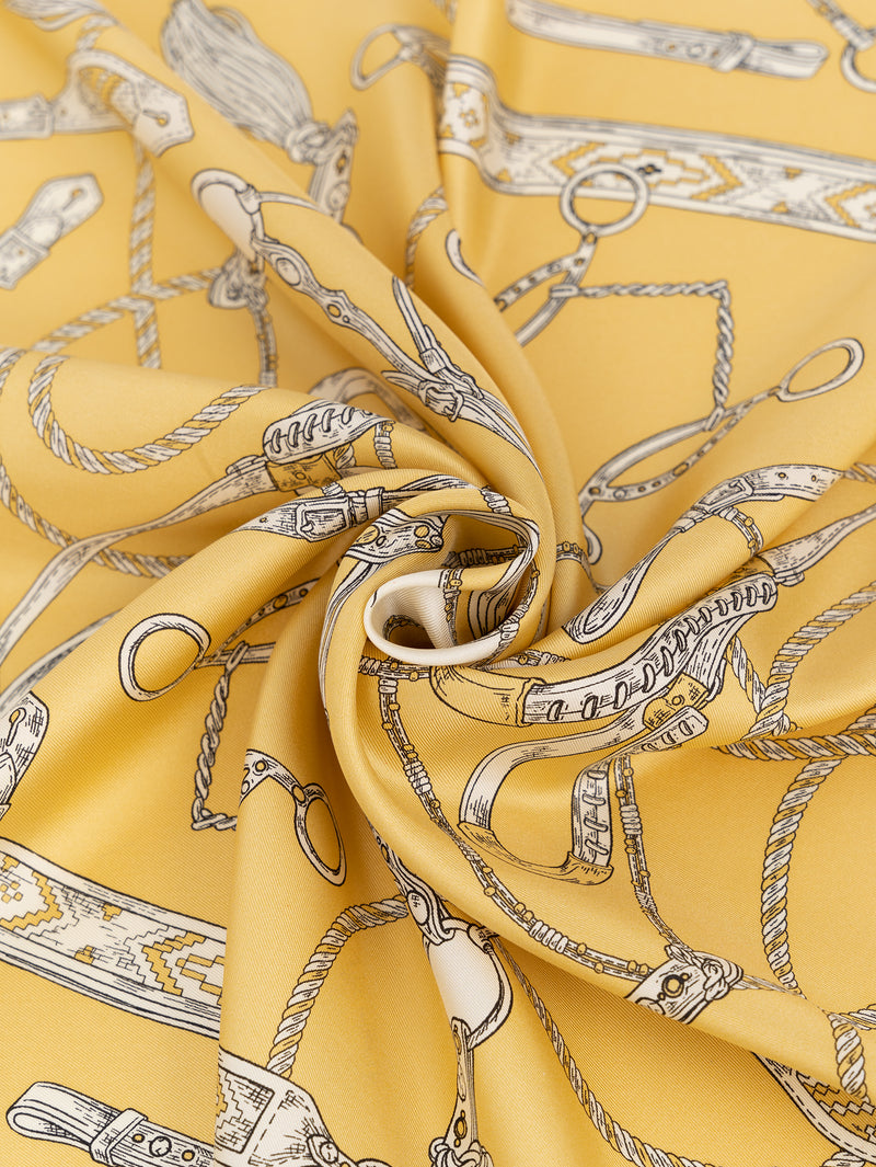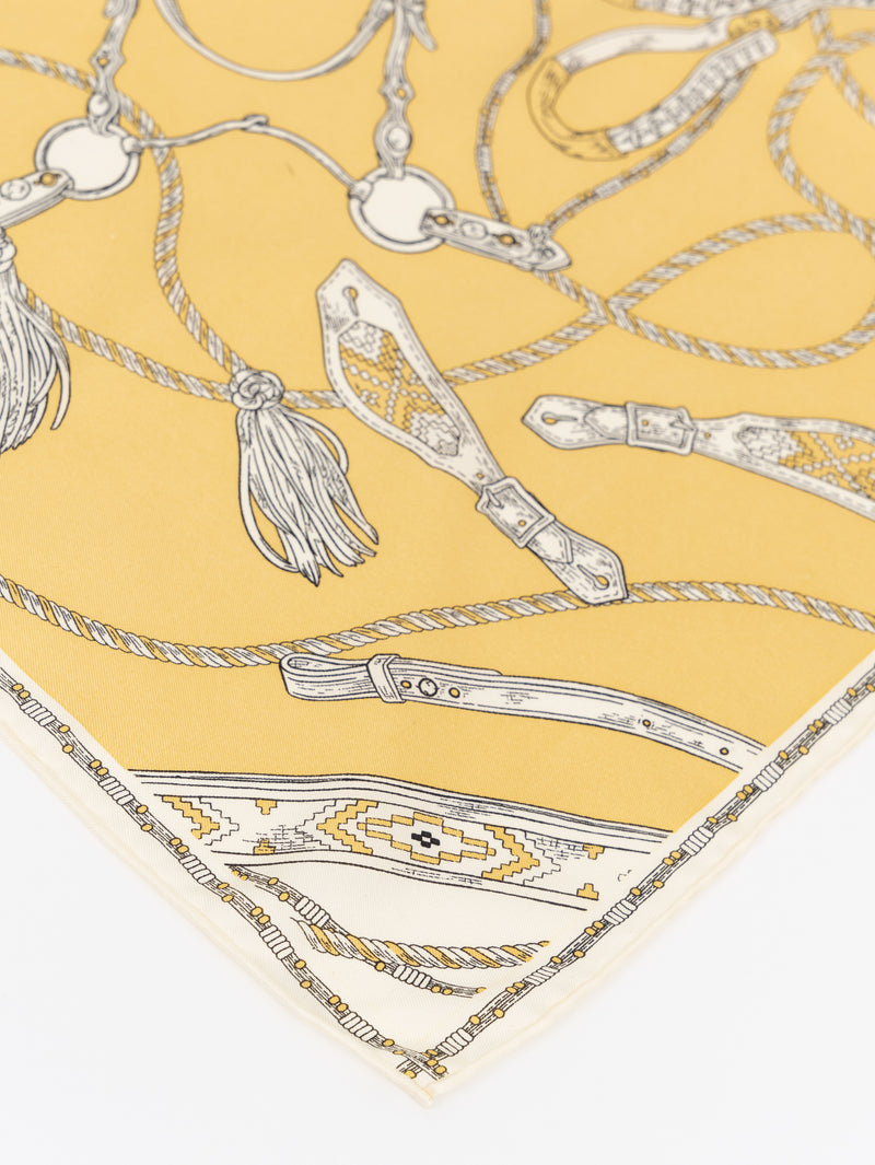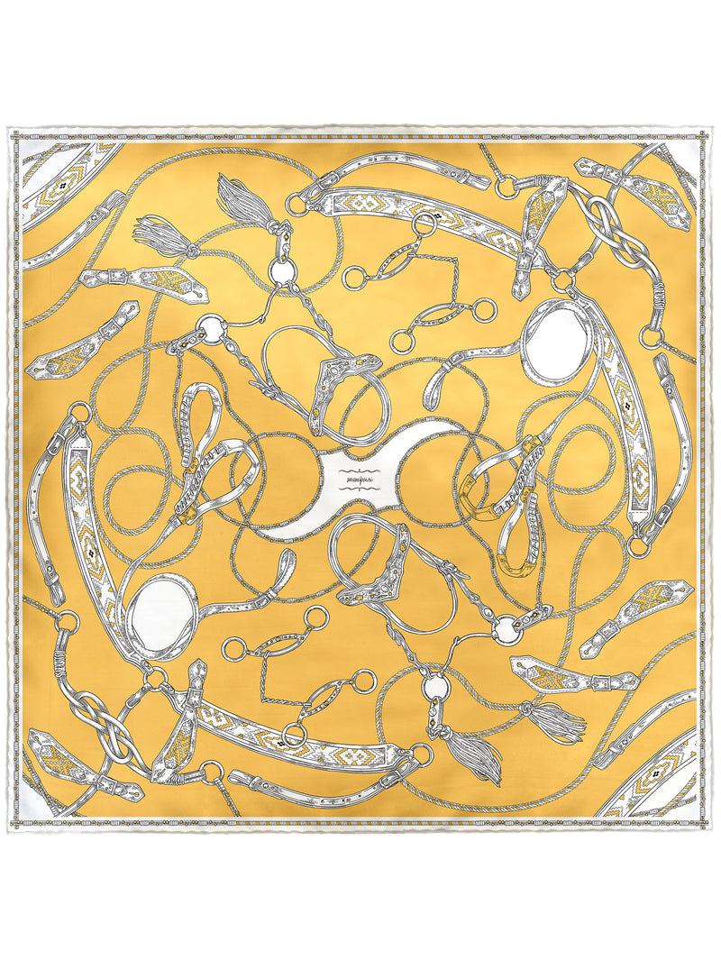 スカーフのモチーフとして親しまれるビット、馬具の柄。ニューメキシコのチマヨ村を起源とするオルテガ柄に彩られた様々な馬具をデザインに用いる事により、ネイティブなイメージに組み上げました。さらに、モノカラーな配色にアレンジされています。
