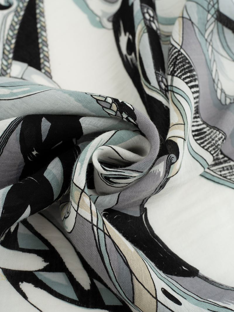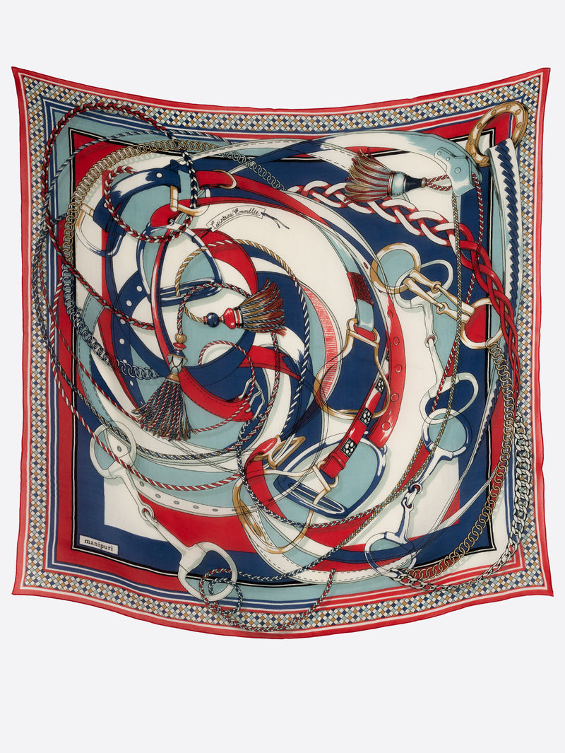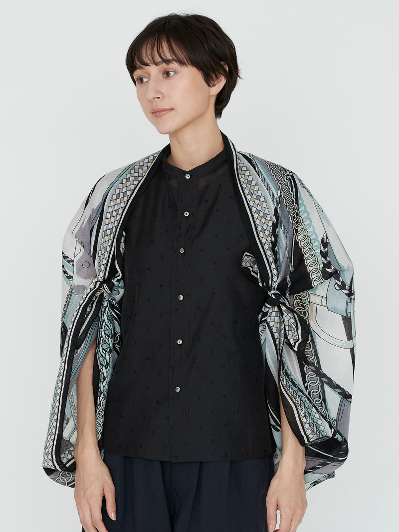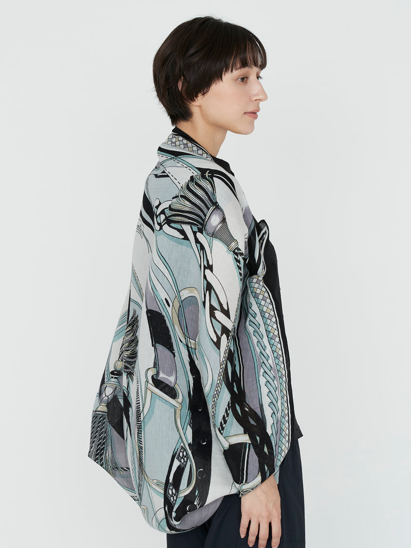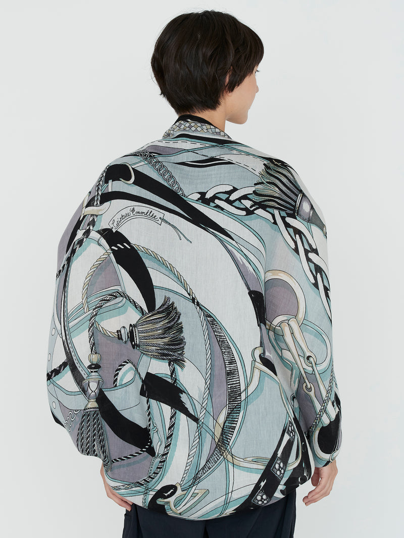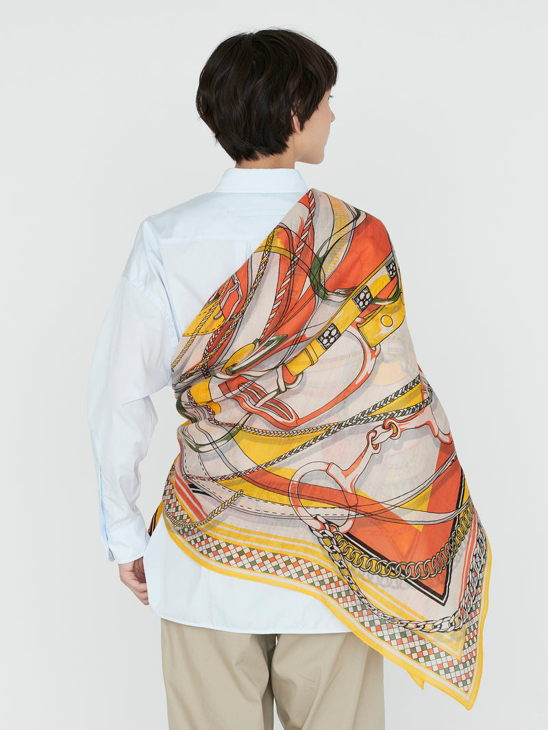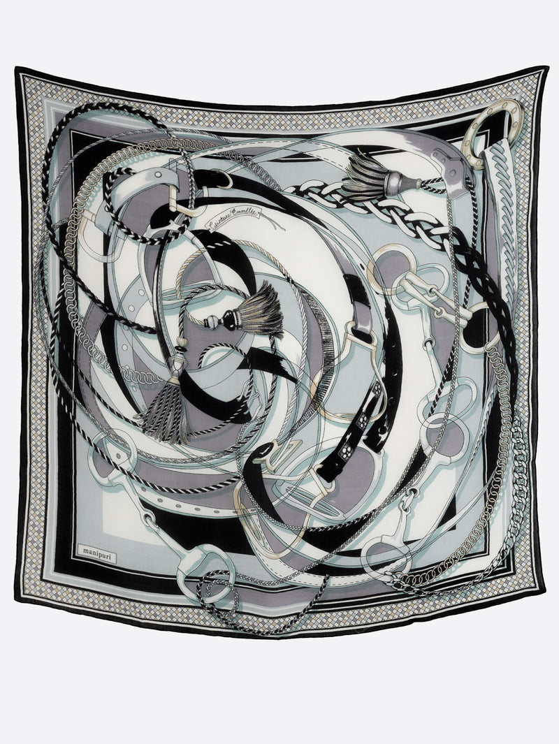 manipuri特注のインドストールは、コットン70%シルク30%の生地ですべてインドで織られています。一度洗いをかけることで、コットンの肌触りは張り感を保ちつつも柔らかくなります。そこにシルクの独特の光沢感がプラスされ、生地の良さを更に引き立てます。使うほどに肌になじみ、生地には独特の落ち感が出ます。また、柄のプリントは、機械などは一切使わず、インドの職人によって1枚ずつ丁寧に手捺染されています。