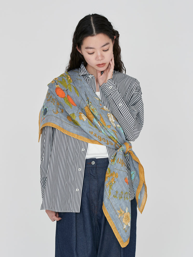 リネン100%の肌触りが柔らかいストール。生地もサイズもすべてmanipuri特注でインドにて織られています。使うほどに肌になじみ、生地には独特の落ち感が出て、長年愛用いただけるアイテムです。また、柄のプリントは機械などは一切使わず、インドの職人によって1枚ずつ丁寧に手捺染されています。春夏のUV対策や室内の冷房対策にもおすすめのアイテムです。