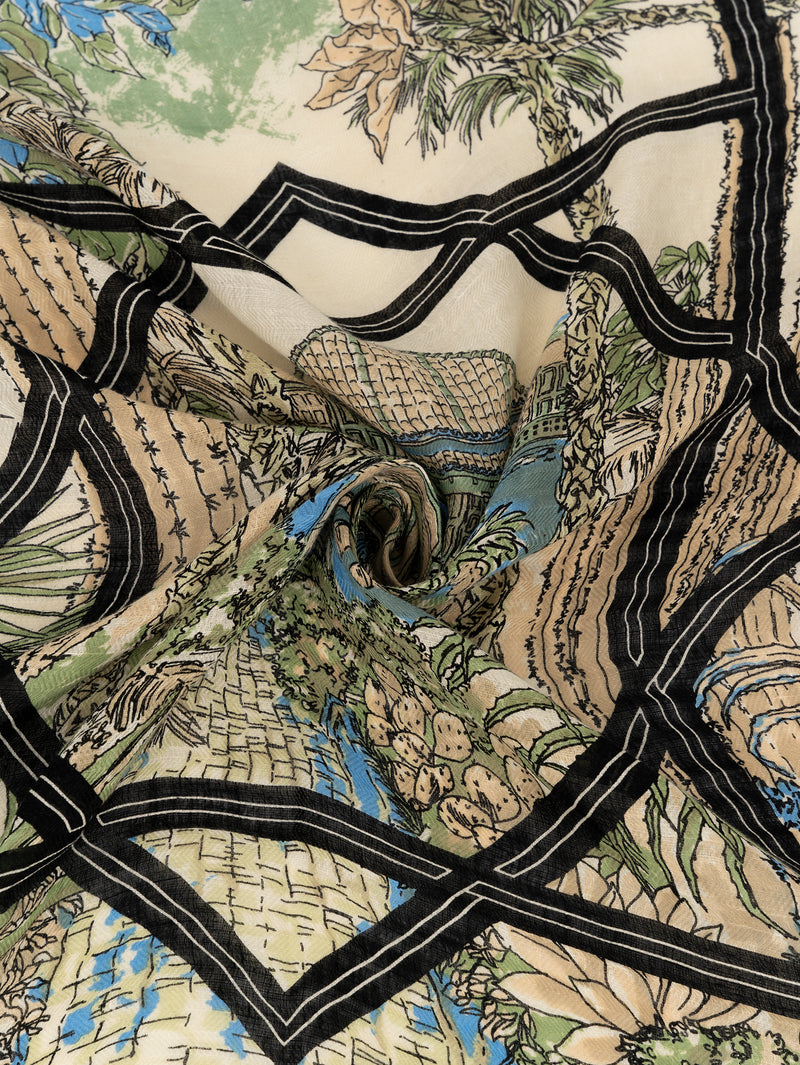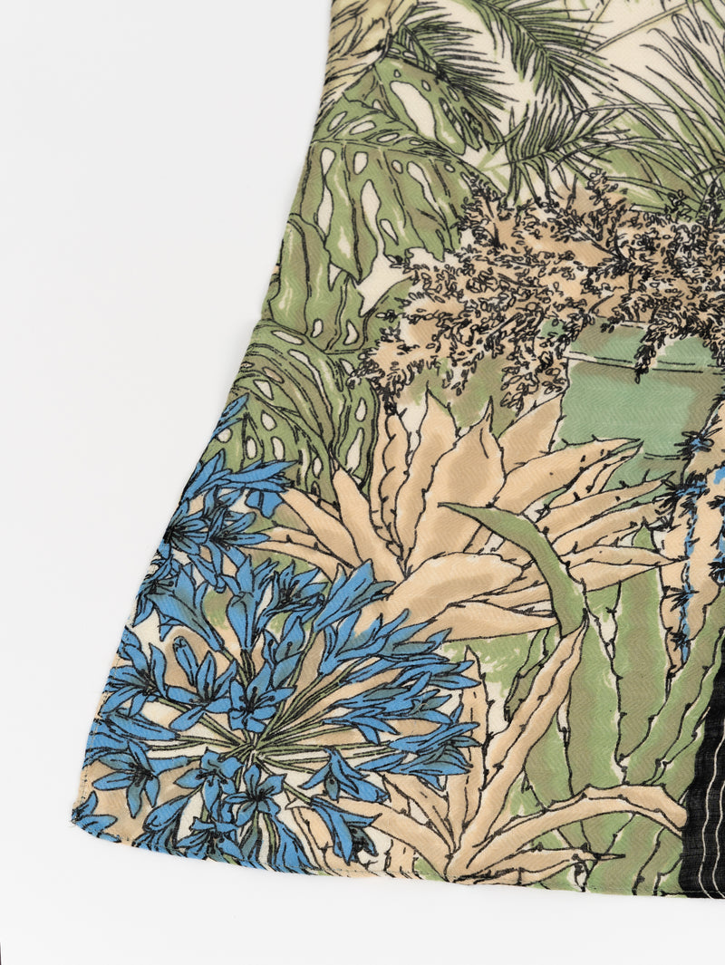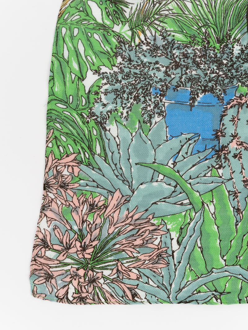 リネン100%の肌触りが柔らかいストール。生地もサイズもすべてmanipuri特注でインドにて織られています。使うほどに肌になじみ、生地には独特の落ち感が出て、長年愛用いただけるアイテムです。また、柄のプリントは機械などは一切使わず、インドの職人によって1枚ずつ丁寧に手捺染されています。春夏のUV対策や室内の冷房対策にもおすすめのアイテムです。