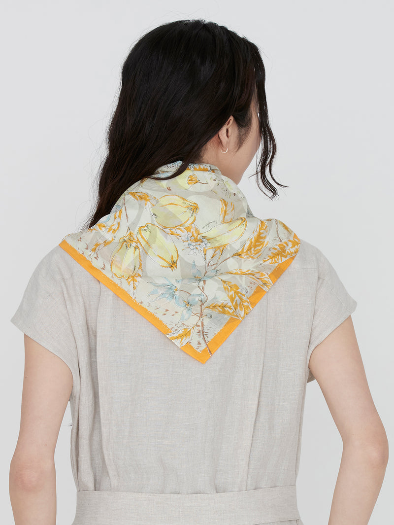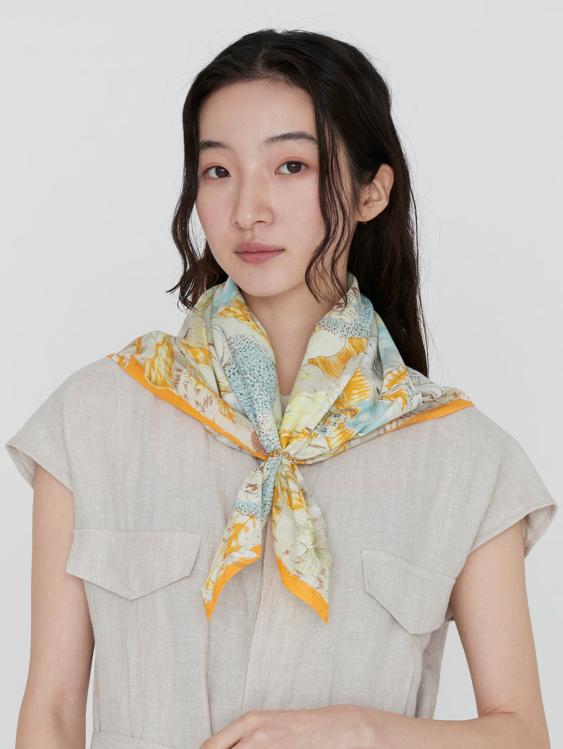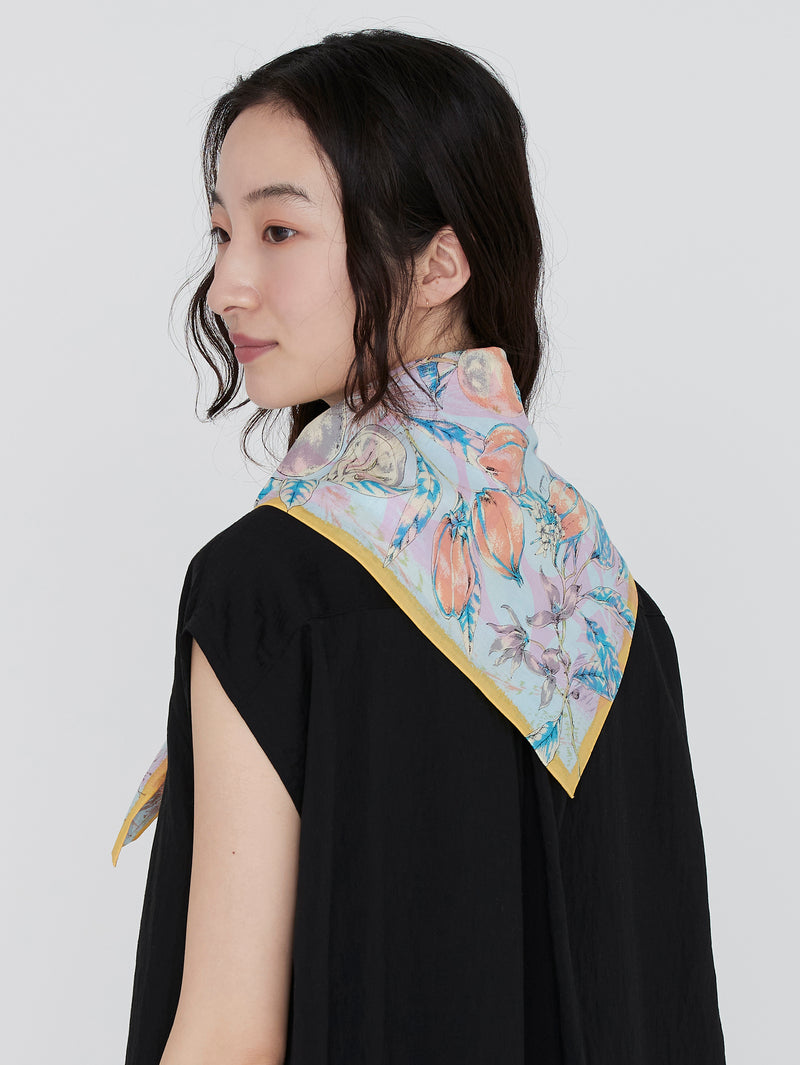<コットンスカーフ65>コラージュジャングルフルーツ
